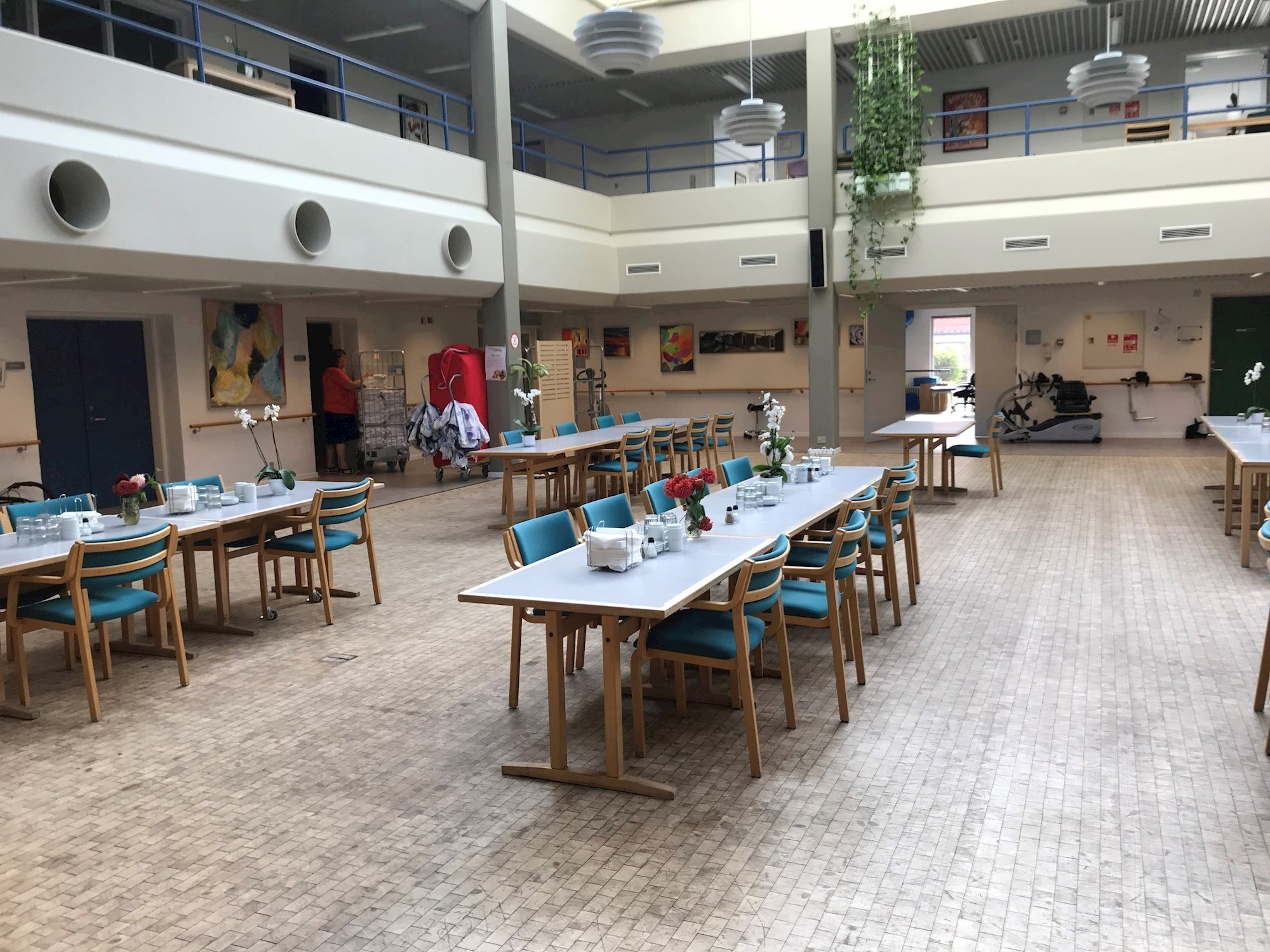 I Klostertoften, findes et træningsområde i atriet, hvor der ud fra dine mål er mulighed for at træne med terapeuterne og efter aftale mulighed for selvtræning.