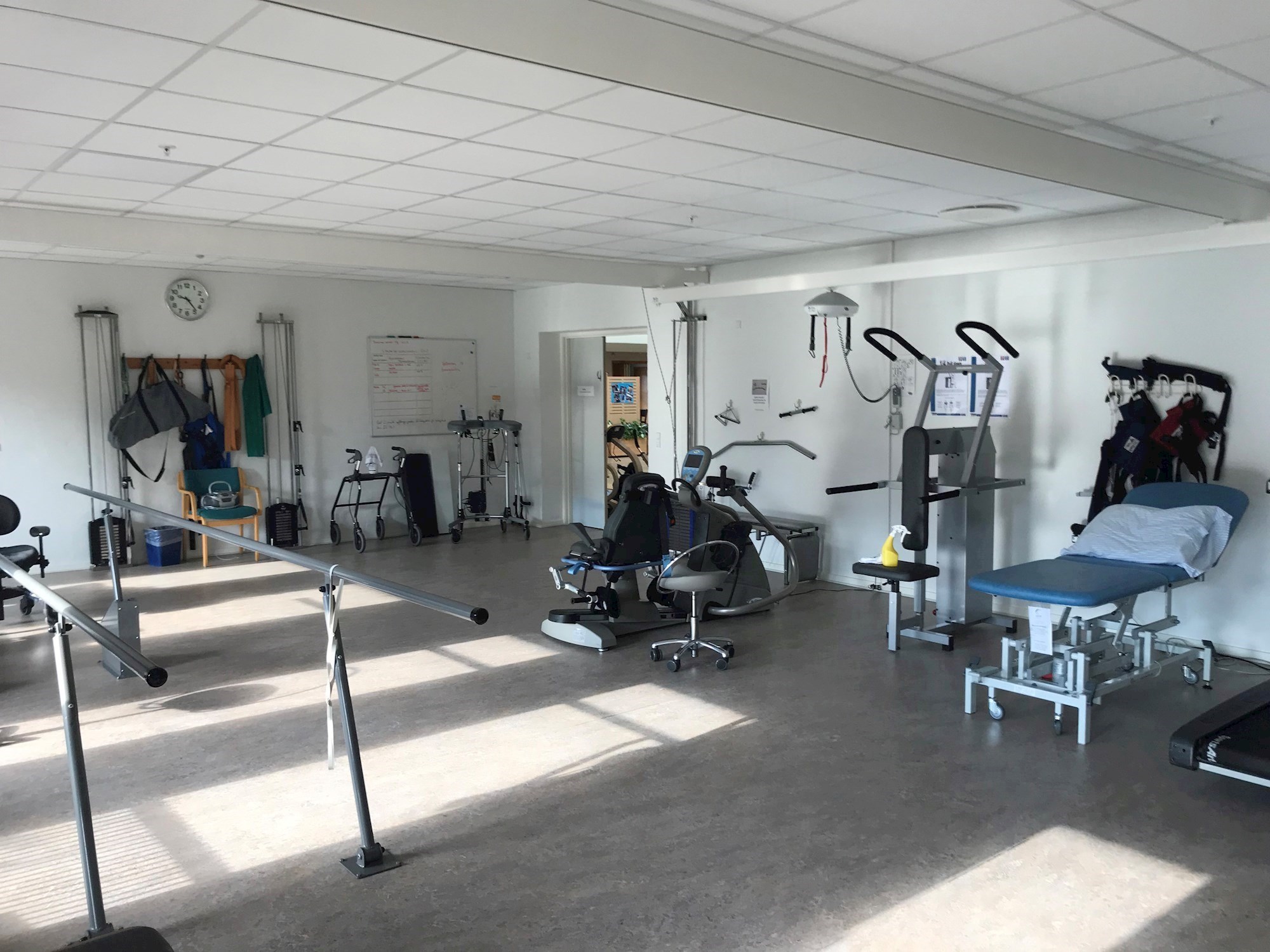 Ligeledes er der i Klosterhaven en træningssal/-rum, hvor der ud fra dine mål er mulighed for at træne med terapeuterne og efter aftale mulighed for selvtræning.